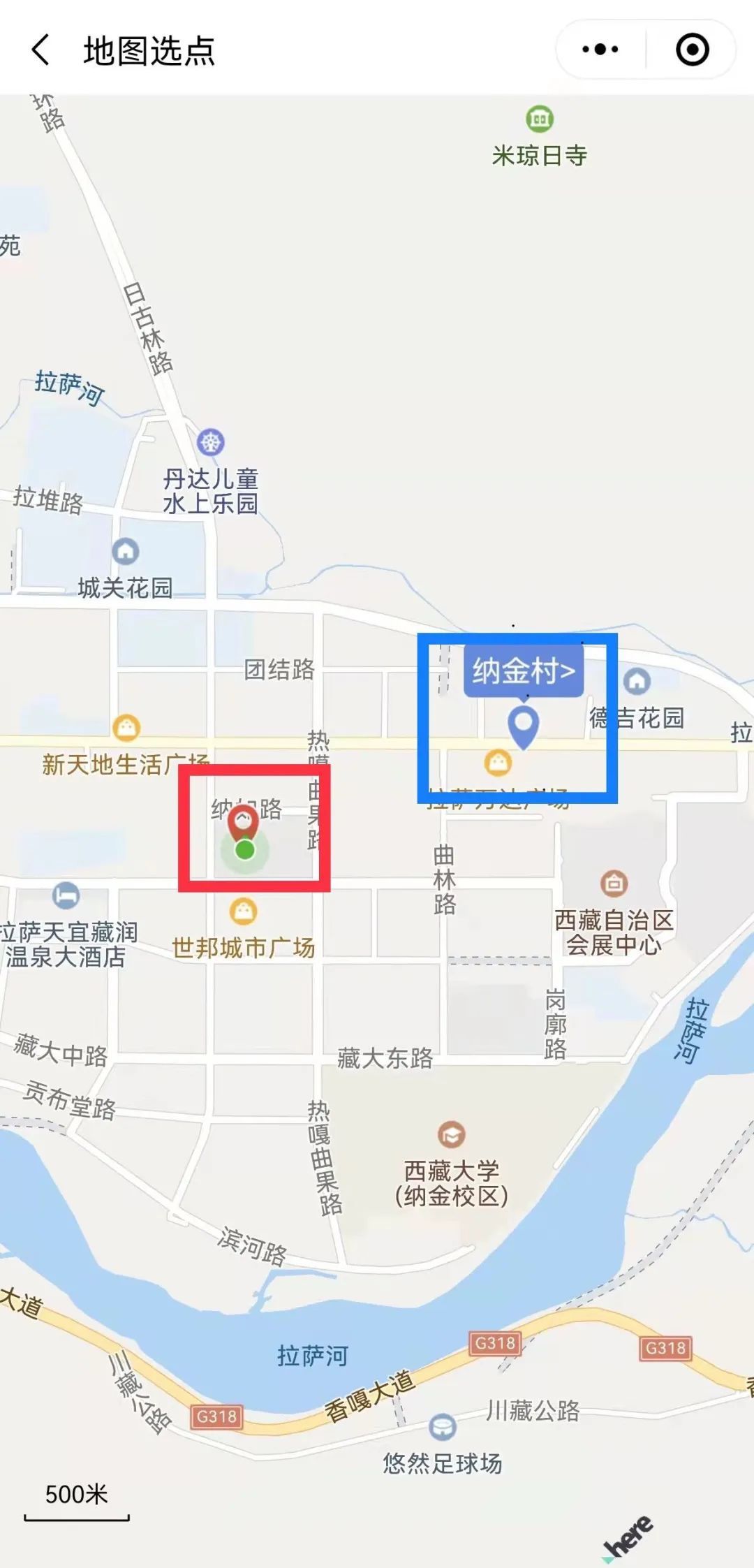 第三步:紅色位置,為搜索地點自行輸入地址定位點;藍色位置,為你所定位地點的管控街道(鄉)和社區(村),請點擊。
